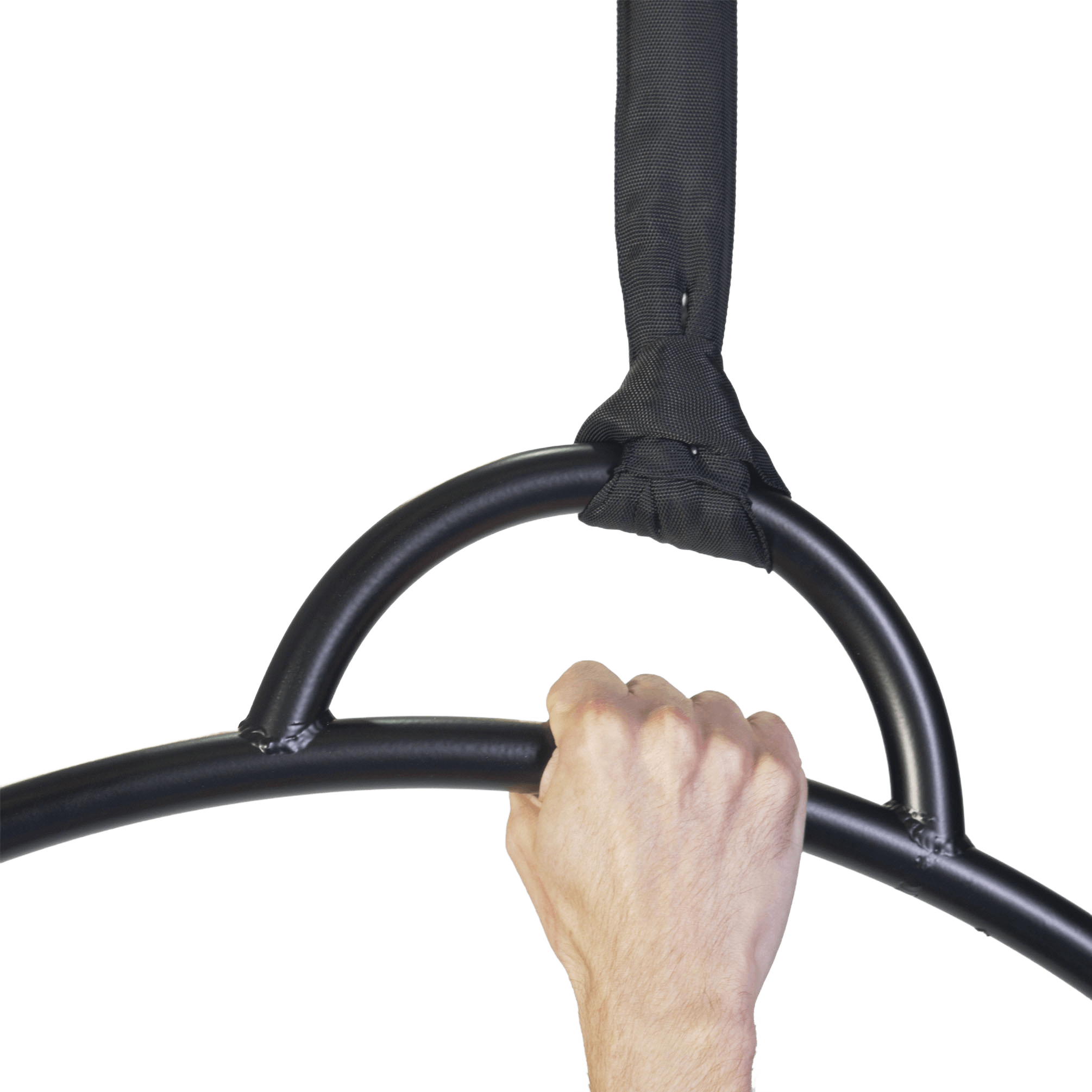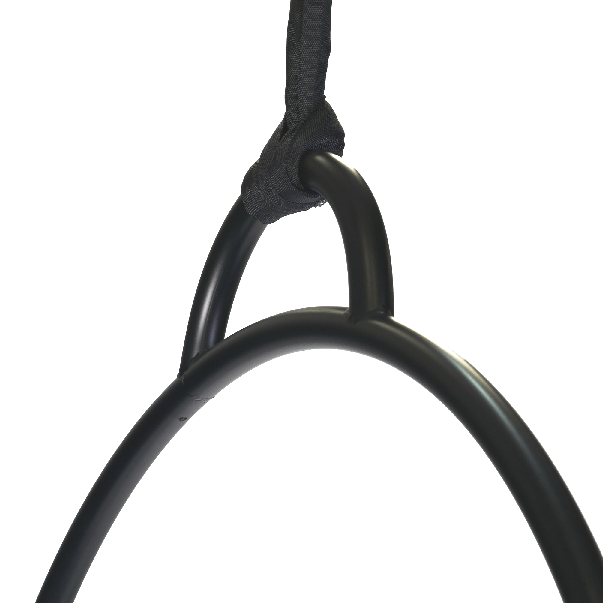 In order to rig this hoop you will need to choke a Polyester Strop or PolySafe Rope from the centre of the Bubble. If you are using the Bubble Aerial hoop bare (un-taped), you should put tape directly under the Strop/PolySafe Rope to prevent the bar from slipping.